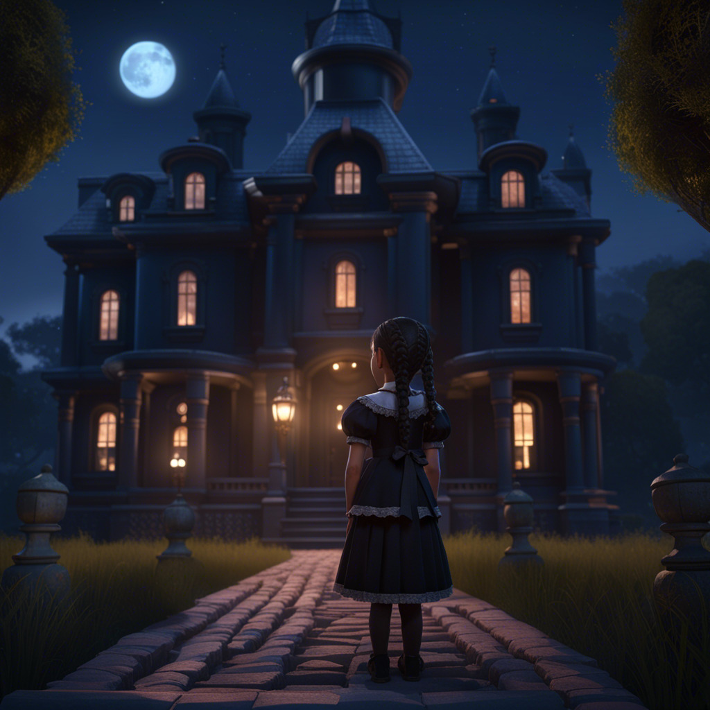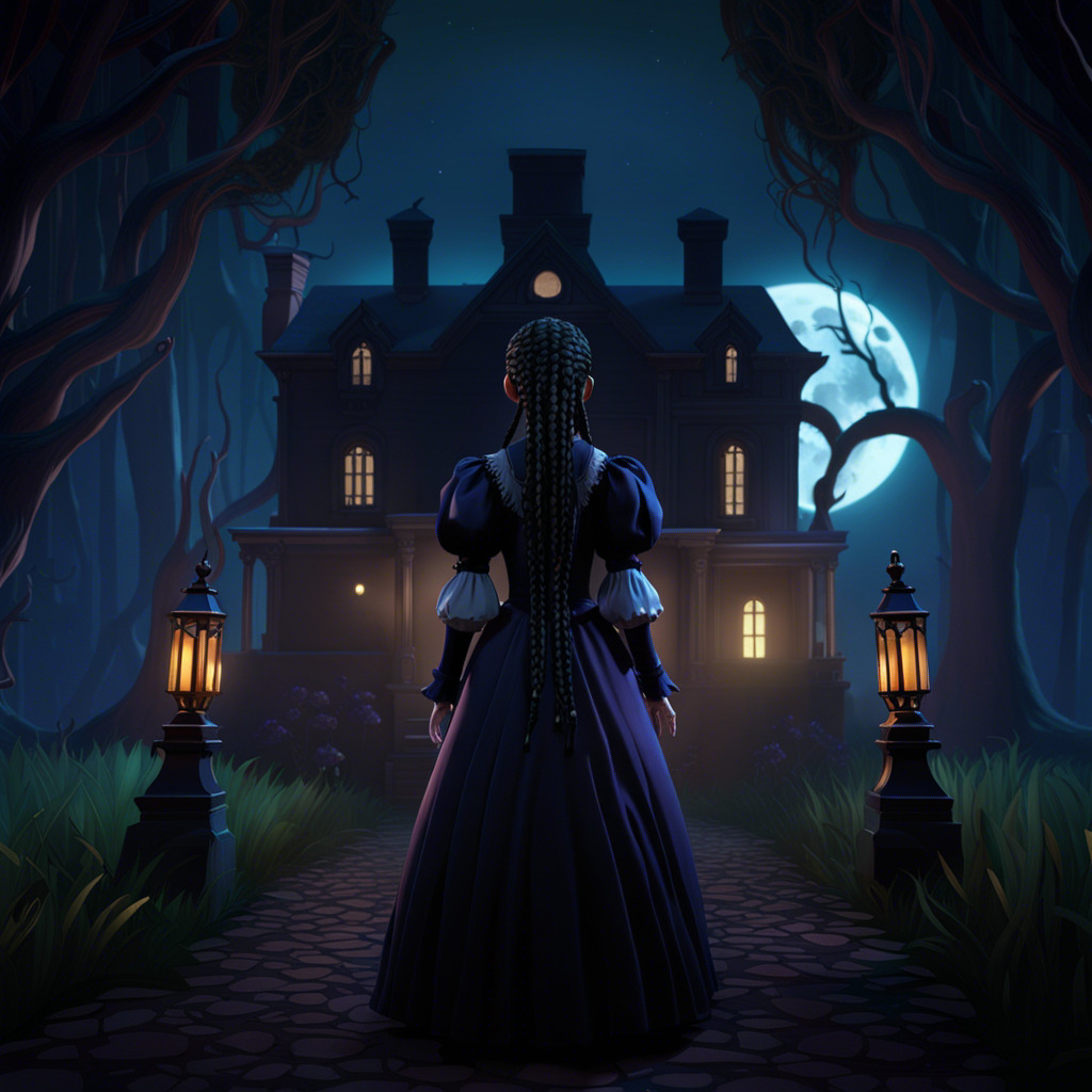 Intrigued, Wednesday decided to attend this secret gathering. She ventured towards the address mentioned in the letter, a haunted mansion at the end of Whispering Woods. The mansion was old and spooky, just the way she liked it.