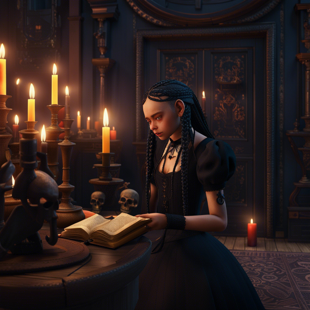 It was just another ordinary night in the Addams Family Mansion. Wednesday was in her room, engrossed in her favorite pastime - studying ancient curses. Suddenly, a mysterious letter slid under her door. It was an invitation to a secret gathering of the world's most powerful witches and wizards, and she was invited!