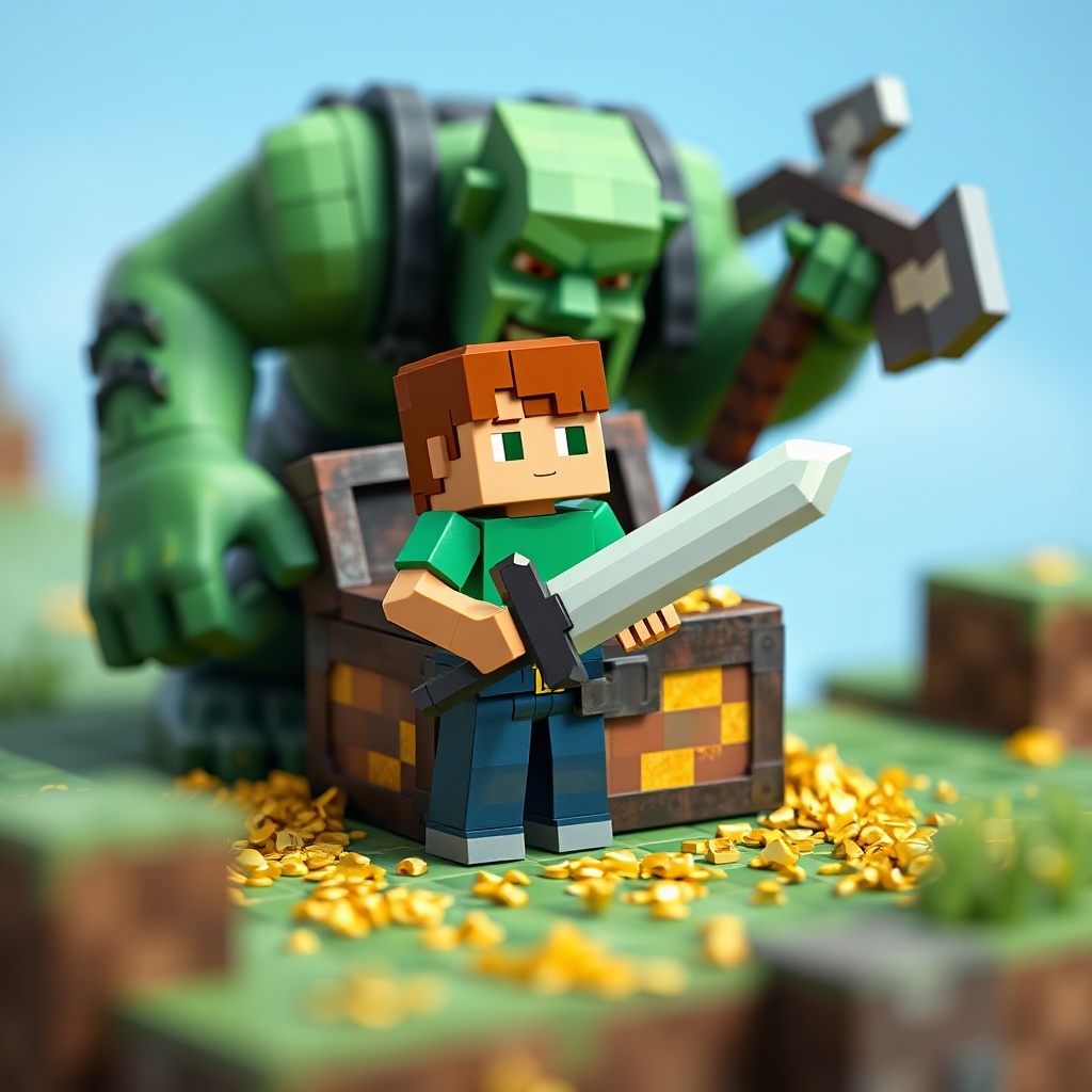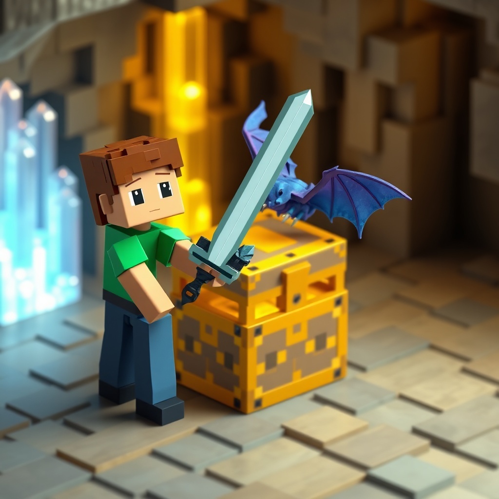 Steve was stunned. He had never seen a creature like this before. The bat, its eyes gleaming with intelligence, turned to Steve and chirped softly. It seemed to be thanking him for saving it. Steve, feeling a sense of gratitude and wonder, decided to follow the bat. It led him deeper into the cave, past winding tunnels and hidden chambers, until they reached a large, open space. In the center of the room, surrounded by glowing crystals, was a chest made of pure gold.